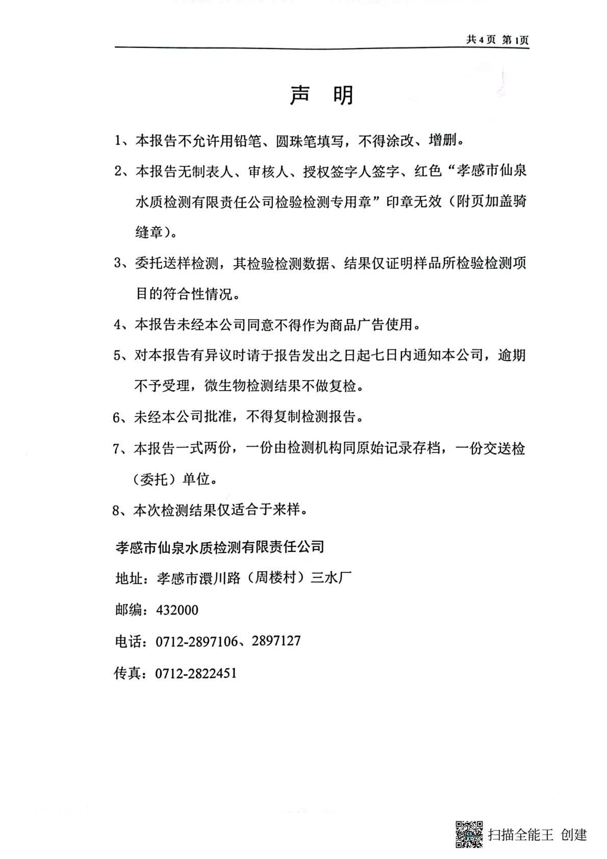 管网水水质公告